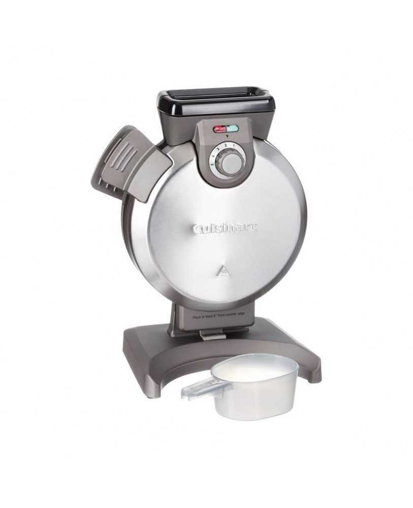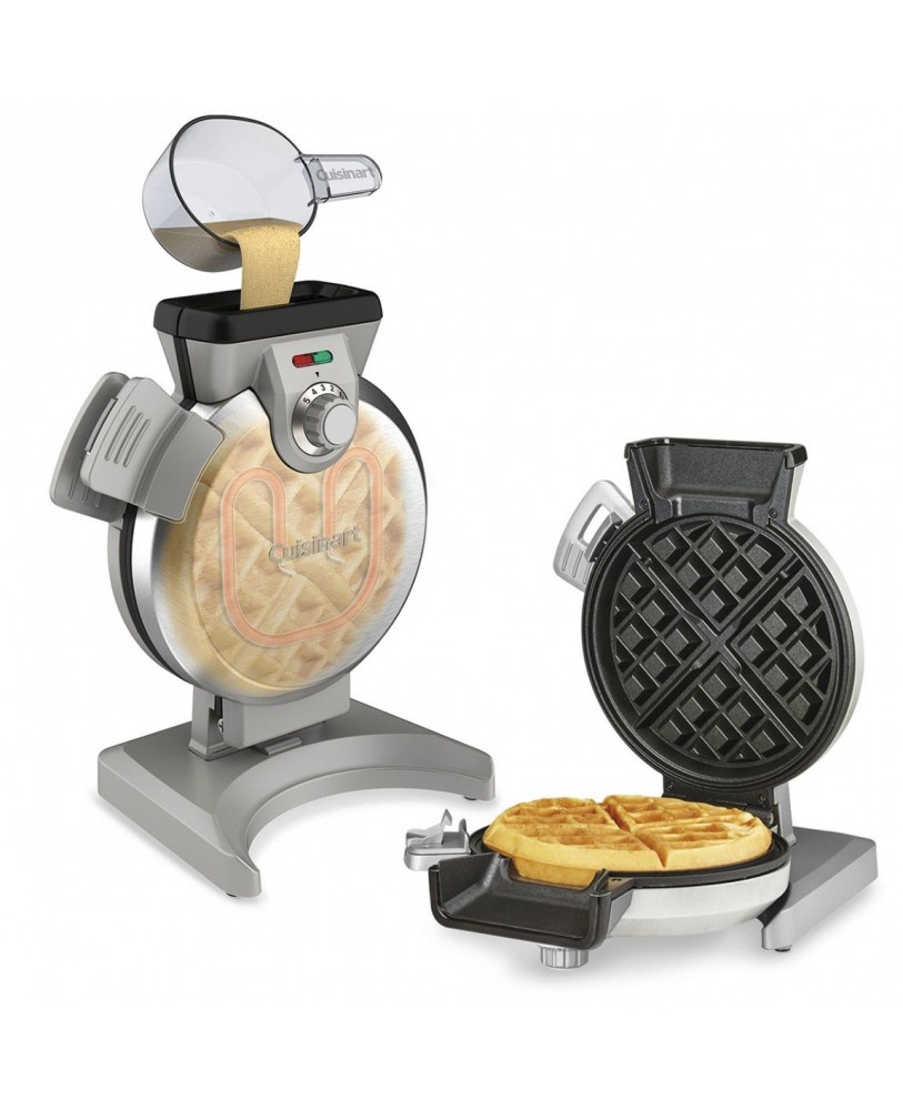 Le gaufrier vertical Cuisinart’s® en acier inoxydable brossé prend moins de place sur le comptoir et fait infailliblement des gaufres belges parfaites. Il suffit d’ajouter un peu d’eau dans votre pâte favorite par l’entonnoir, jusqu’à la ligne de remplissage, pour obtenir une gaufre d’épaisseur uniforme de haut en bas et d’un côté à l’autre, qui ne débordera pas. Les voyants et un bip sonore, en plus de cinq degrés de grillage, garantissent la cuisson parfaite des gaufres qui feront la joie de votre famille entière et de vos amis.